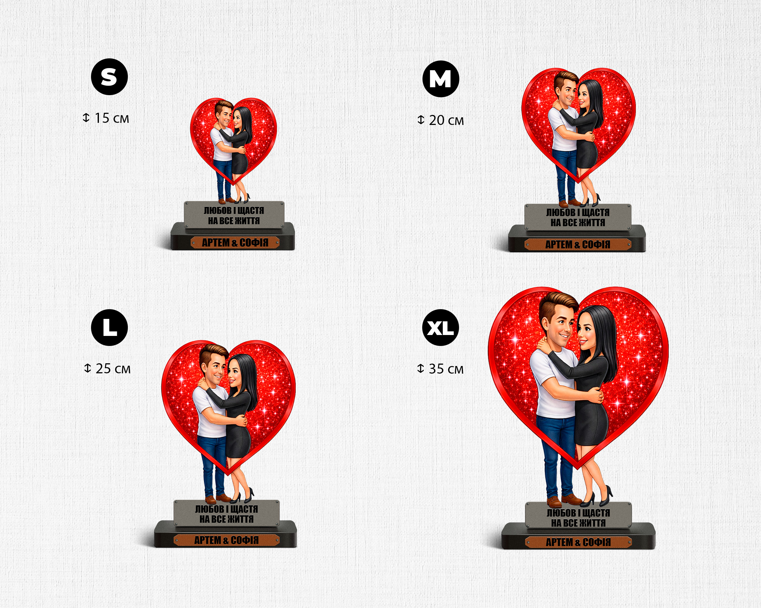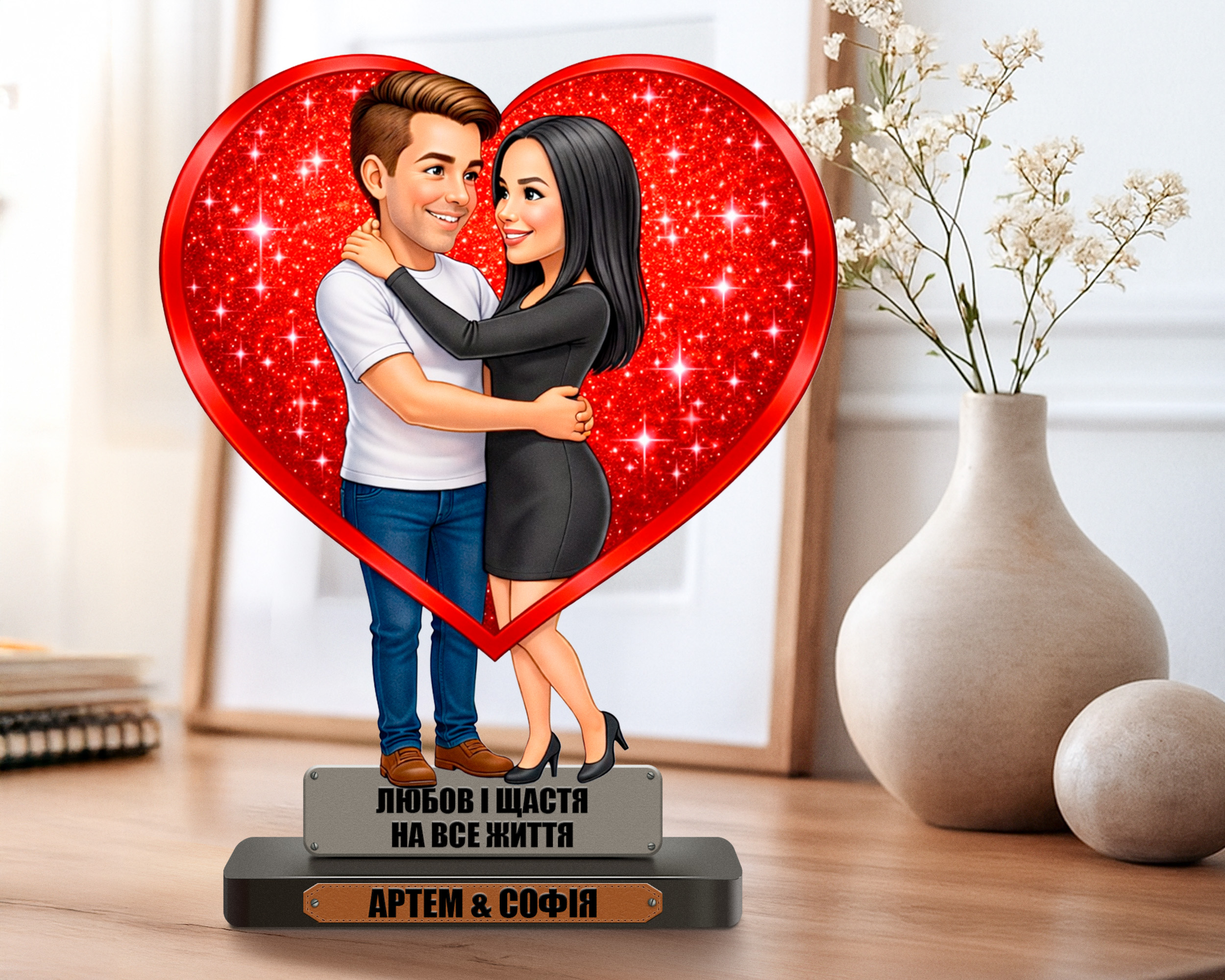Статуетка Серце Ваші обличчя, ваші імена та унікальний напис — ідеальний подарунок для коханої людини